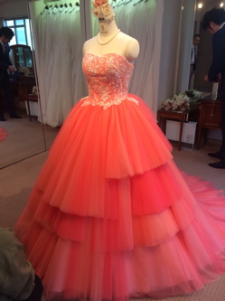 今回は、なんとも言えない発色のよさが目をひくオレンジのカラードレス!!