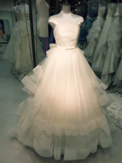 ウエストに細いリボン、後ろの腰元にも大きなリボンが付いていて
